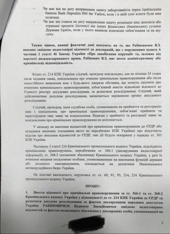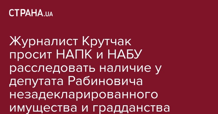 Журналист Крутчак просит НАПК и НАБУ расследовать наличие у депутата Рабиновича незадекларированного имущества и градданства Израиля
