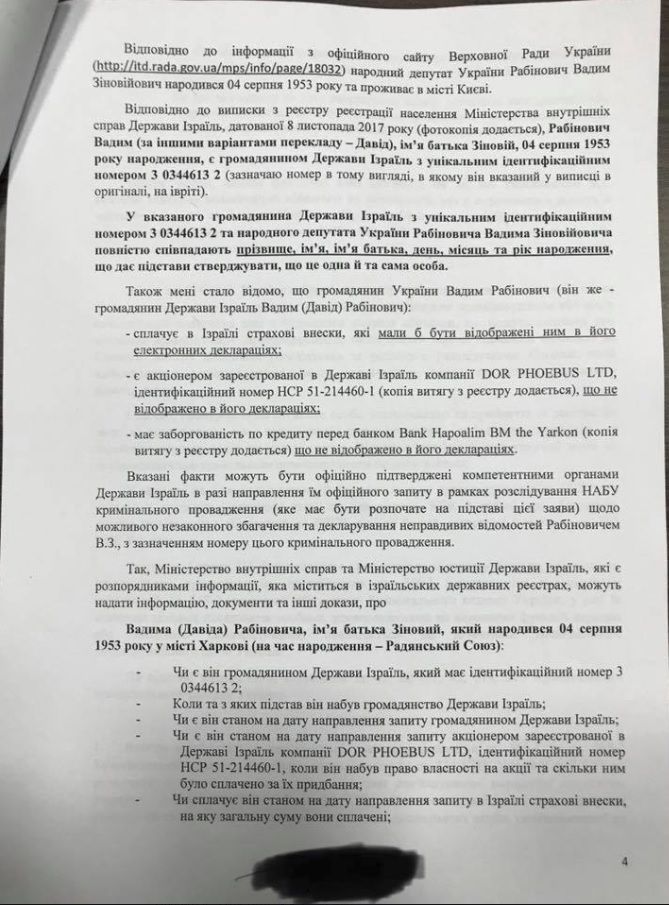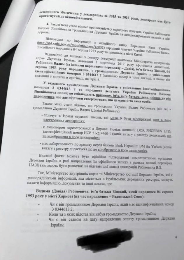 Кроме того, Рабинович скрыл гражданство Израиля, в котором он оплачивает недекларируемые в Украине социальные взносы, утверждает Крутчак.