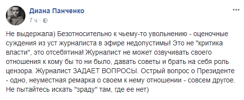 Также выссказалась и ведущая телеканала Диана Панченко.