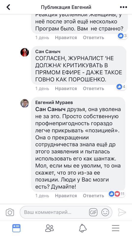 Позже, в комментариях к обсуждению этой темы в ФБ свою позицию выссказал и Евгений Мураев.