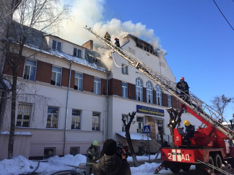 В центре Черновцов полыхает здание транспортного колледжа. Фото