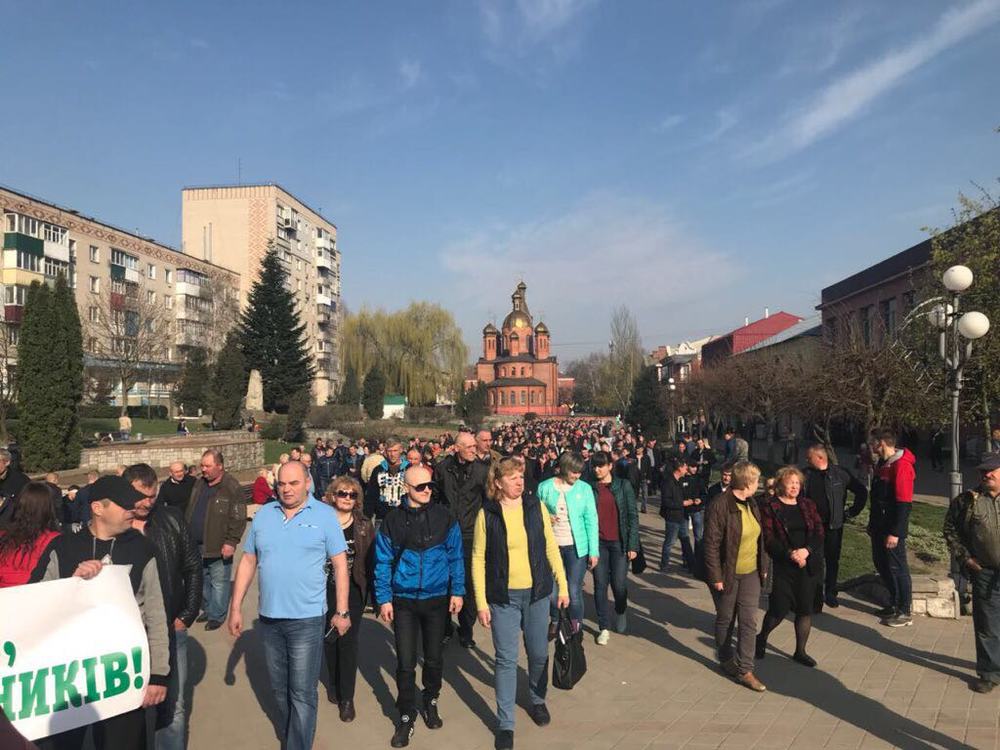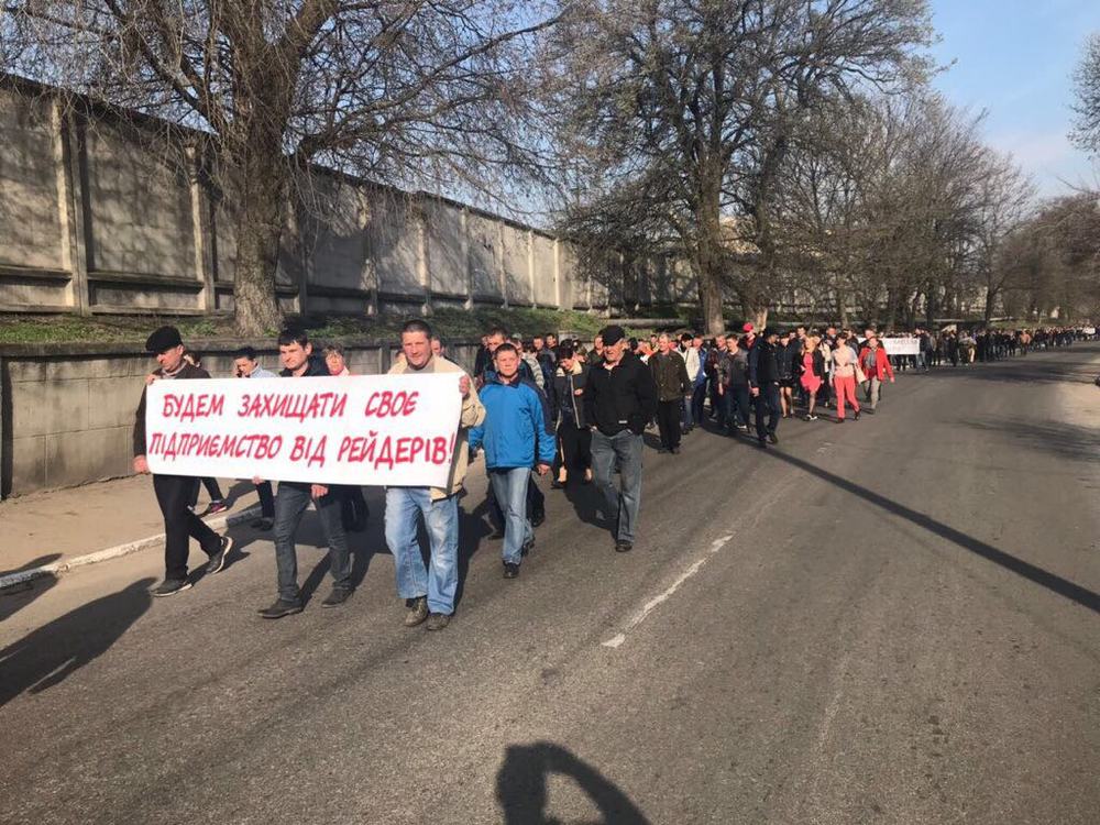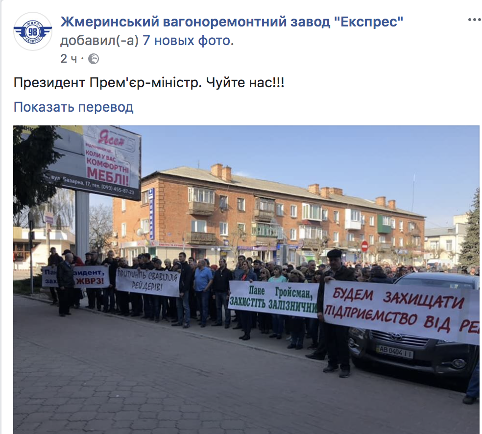 Работники Жмеринского вагоноремонтного завода "Экспресс" вышли на акцию протеста под Жмеринскую райадминистрации с просьбой к президенту и главе правительства вмешаться в действия совместной следственной группы СБУ и ГПУ, которые, как утверждают на предприятии, помогают рейдерам захватывать частные предприятия, принимавшие участие в тендерах УЗ через систему Prozzorro.
