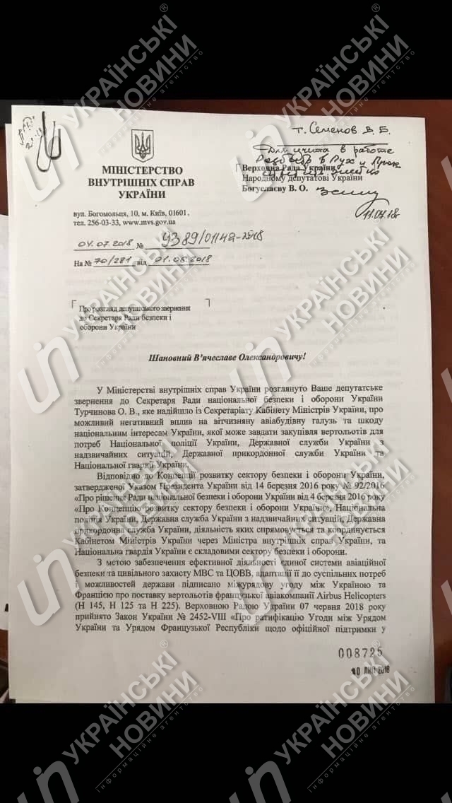 В письме говорится, что французская авиакомпания предложила для Украины вертолеты, которые имеют тактико-технические и эксплуатационные характеристики, отвечающие актуальным нуждам Государственной пограничной службы, Национальной полиции, Национальной гвардии и Государственной службы по чрезвычайным ситуациям в выполнении поставленных задач.
