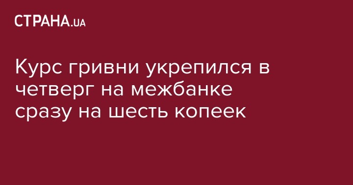 Курс гривни укрепился в четверг на межбанке сразу на шесть копеек