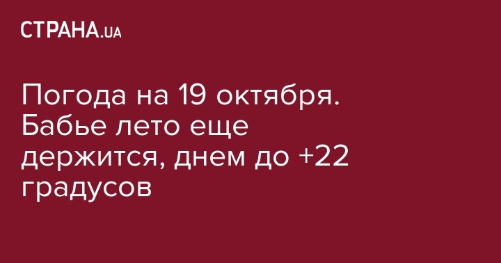 Погода на 19 октября. Бабье лето еще держится, днем до +22 градусов