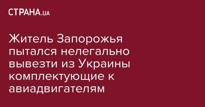 "Оперативники спецслужбы установили, что житель Запорожья пытался переправить в Восточную Азию комплектующие к авиационным двигателям, которые используются в военной и гражданской авиации. Для этого он воспользовался одной из международных курьерских служб доставки", - говорится в сообщении.