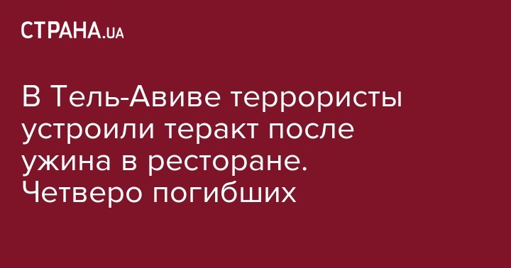 В Тель-Авиве террористы устроили теракт после ужина в ресторане. Четверо погибших
