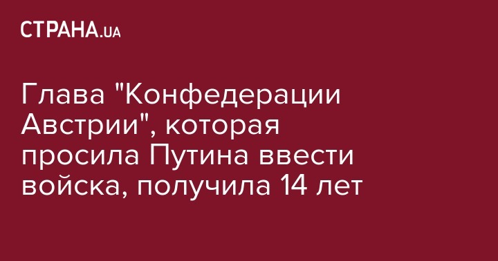 Глава "Конфедерации Австрии", которая просила Путина ввести войска, получила 14 лет