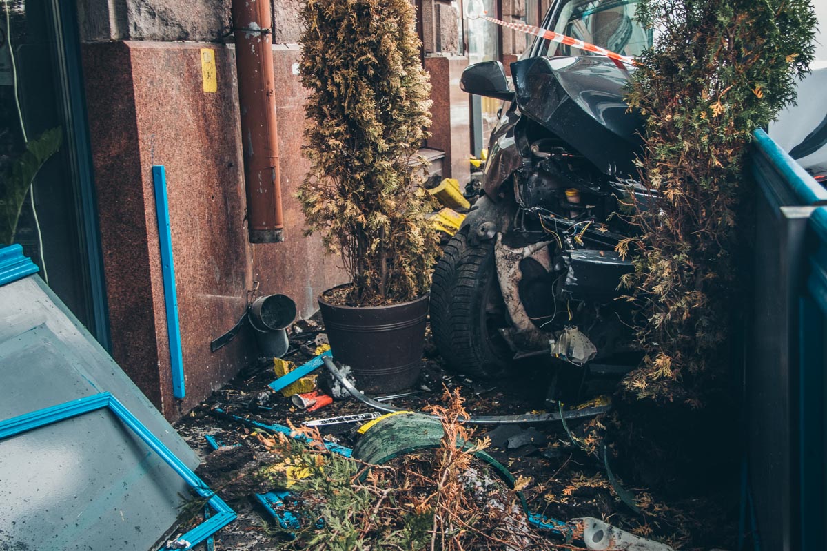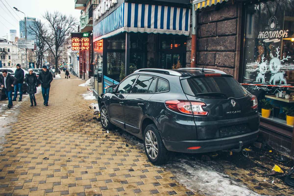 "Renault двигался по улице Льва Толстого в сторону одноименной площади. На перекрестке с улицей Владимирской "француза" подрезал Audi, который поворачивал с Льва Толстого налево на Владимирскую. Чтобы избежать столкновения, водитель Renault Megane вырулил на тротуар и, снеся клумбы и декорации, влетел в террасу ресторана Pastatecа. Водитель Audi скрылся с места происшествия", - рассказали очевидцы.