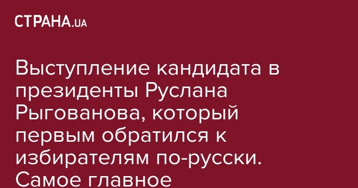 Выступление кандидата в президенты Руслана Рыгованова, который первым обратился к избирателям по-русски. Самое главное