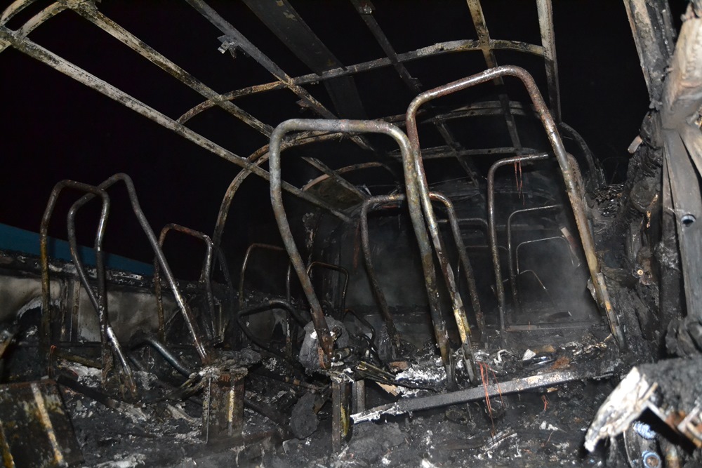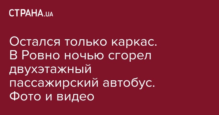 Остался только каркас. В Ровно ночью сгорел двухэтажный пассажирский автобус. Фото и видео