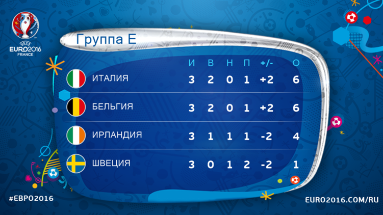 В группе Е определились три команды, которые продолжат борьбу в следующем раунде футбольного чемпионата Европы 2016, что проходит в эти дни на полях Франции.
