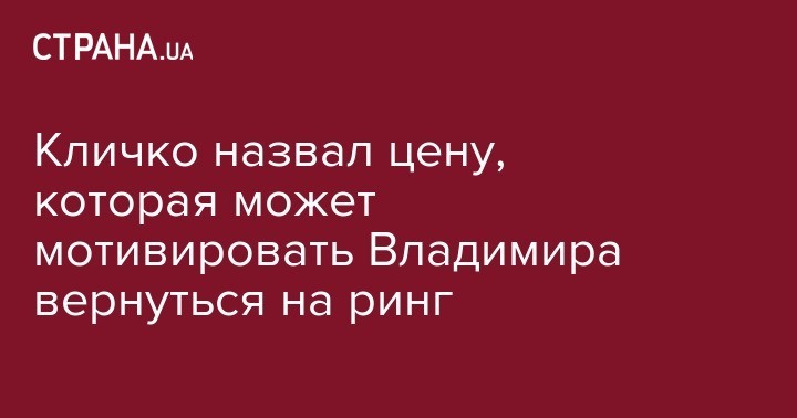 Экс-чемпион мира в супертяжелом весе Владимир Кличко согласится возобновить спортивную карьеру за 100 миллионов долларов. Об этом сообщил его брат Виталий в интервью Abendzeitung.