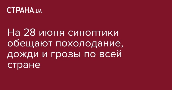 На 28 июня синоптики обещают похолодание, дожди и грозы по всей стране