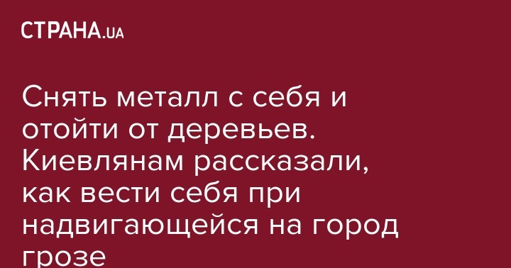 Также киевлянам напомнили, что во время грозы нельзя прятаться под высокими деревьями, сидеть на полянах, прятаться под скалами, купаться, идти по открытой местности в мокрой одежде и идти плотной группой.