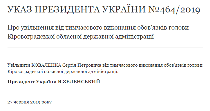 Зеленский сменил только назначенного врио главы Кировоградской обладминистрации