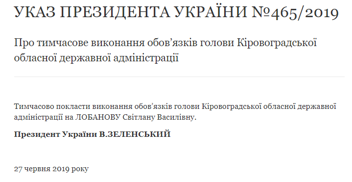 Президент Украины Владимир Зеленский освободил Сергея Коваленко от должности временно исполняющего главы Кировоградской областной государственной администрации (ОГА) и назначил на этот пост Светлану Лобанову.