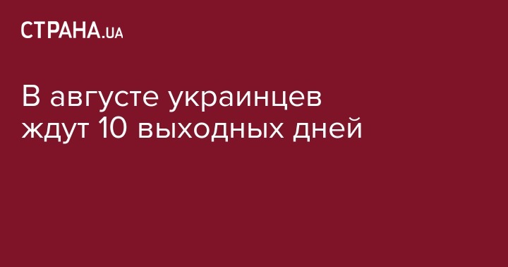В последний летний месяц в стране будет 21 рабочий день и 10 выходных. Дополнительный выходной будет из-за празднования Дня независимости в Украине.