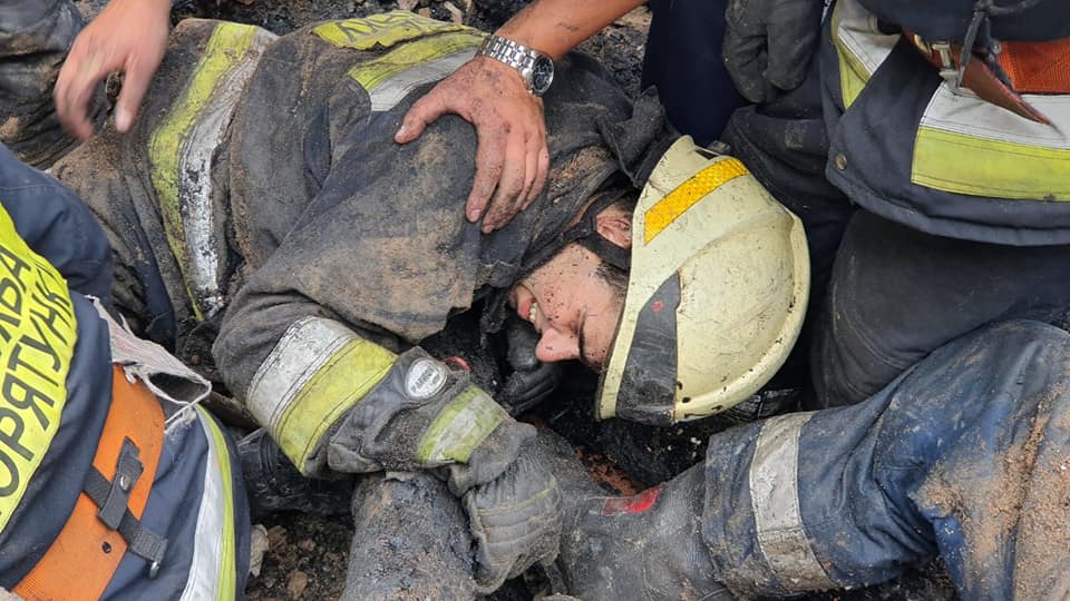 В Днепре при пожаре пострадали трое спасателей, одного из них завалило балками