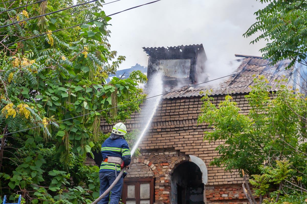 Площадь пожара составила 150 кв.м. Для ликвидации пожара привлечены 15 спасателей и 4 единицы техники. Дым затянул на проспект Яворницкого, окутал Старомостовую и Вокзальную.