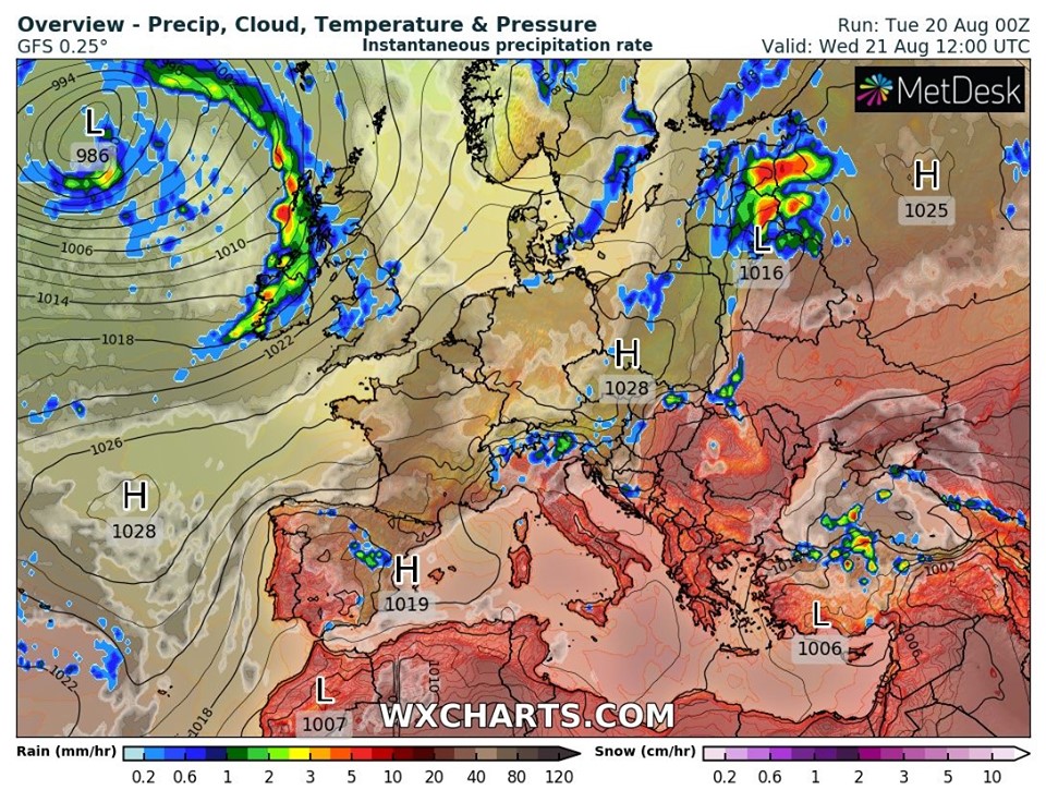 Итак... В среду на юге, востоке и в большинстве центральных областей страны температура будет +30...+34 градуса, местами до +35 градусов. В Карпатах +21...+24.