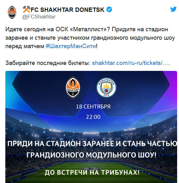 Сегодня, 18 сентября, в Украину вернется Лига чемпионов. Донецкий Шахтер в Харькове сыграет против Манчестер Сити на ОСК "Металлист".
