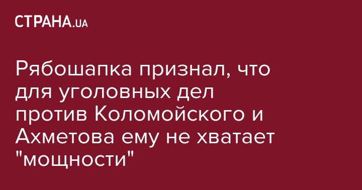 Рябошапка признал, что для уголовных дел против Коломойского и Ахметова ему не хватает "мощности"