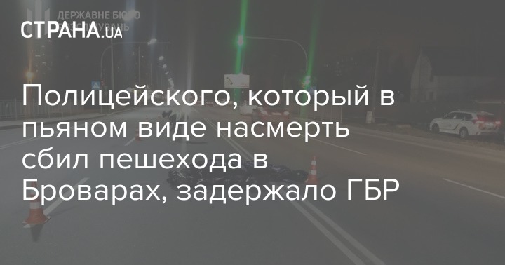 Следователи Государственного бюро расследований задержали полицейского, который, будучи пьяным, 16 февраля спровоцировал ДТП в Броварах под Киевом, сбив на переходе двух пешеходов.