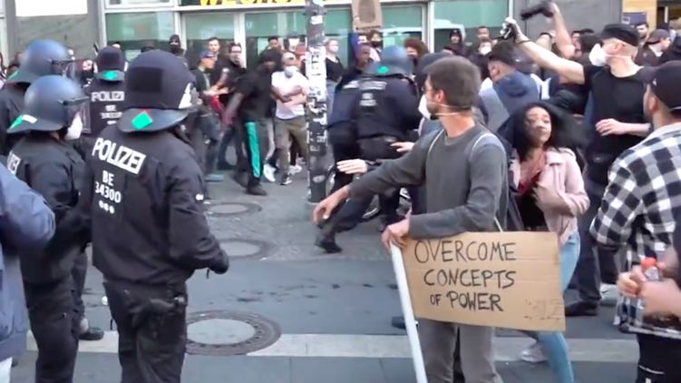 В Берлине, после акции протеста против полицейского насилия, были задержаны десятки человек. Видео: RT/ YouTube