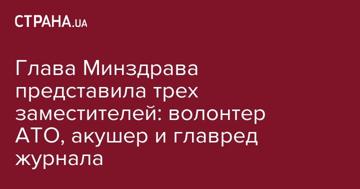 Глава Минздрава представила трех заместителей: волонтер АТО, акушер и главред журнала