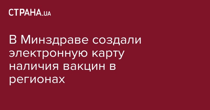 Министерство здравоохранения подготовило онлайн карту, на которой можно отследить наличие вакцин в конкретном регионе Украины. Об этом в Facebook сообщила и.о. министра здравоохранения Ульяна Супрун.