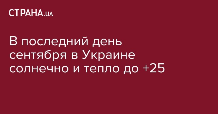 В пятницу, 30 сентября, сентября погода по всей Украине будет солнечной и теплой. Об этом говорит прогноз от Укргидрометцентра.