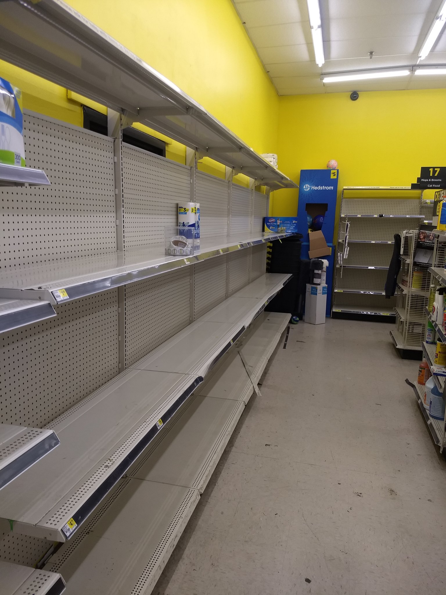 С полок размели самые ходовые товары, в том числе туалетную бумагу. Фото: соцсети