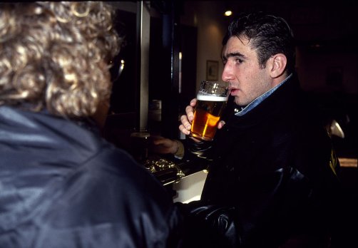 15. Эрик Кантона спокойно пьет в пабе, что не помешает ему в том же году перейти в "Манчестер Юнайтед".