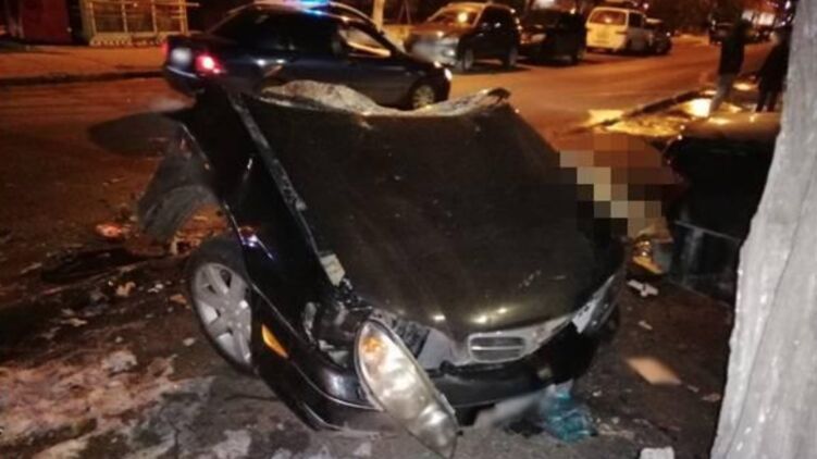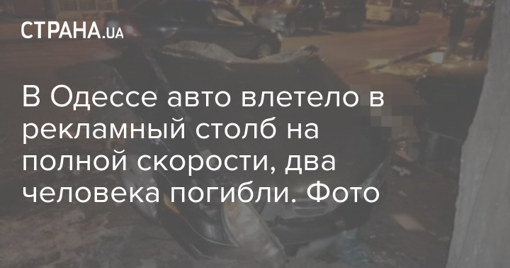 В Одессе авто влетело в рекламный столб на полной скорости, два человека погибли. Фото