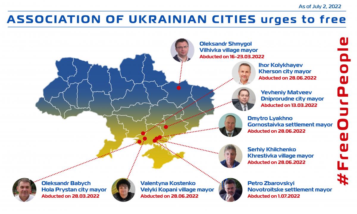 По состоянию на субботу, 2 июля, в российским плену находится восемь сельских, поселковых и городских голов Украины.