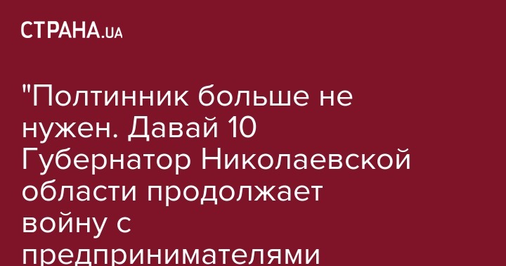 "Полтинник больше не нужен. Давай 10%. Губернатор Николаевской области продолжает войну с предпринимателями региона