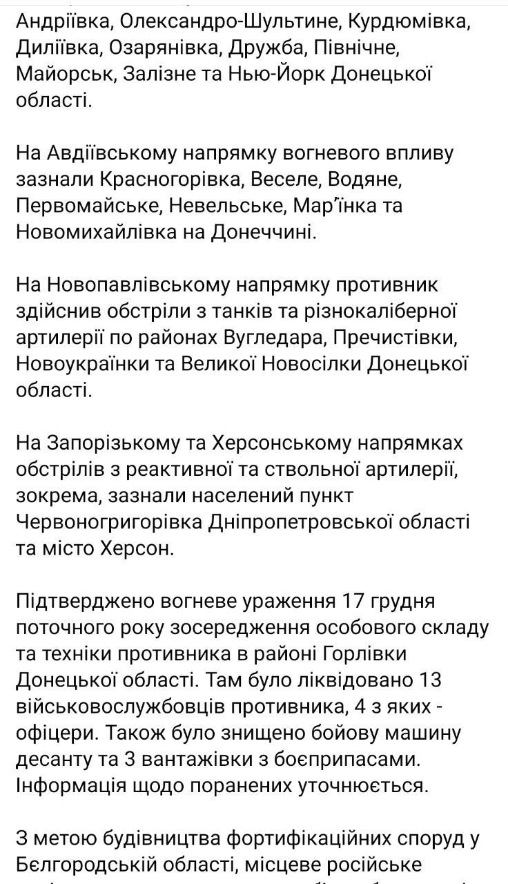 Сводка опубликована на Facebook-странице Генштаба.