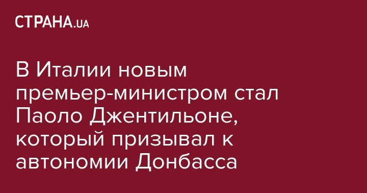 В Италии новым премьер-министром стал Паоло Джентильоне, который призывал к автономии Донбасса