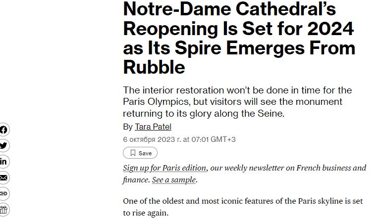 Несмотря на то, что ранее президент Франции Эммануэль Макрон обещал открыть Нотр-Дам к Олимпийским играм летом 2024 года, в это время здание по-прежнему будет закрыто и застроено строительными лесами.