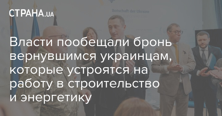 Власти пообещали бронь вернувшимся украинцам, которые устроятся на работу в строительство и энергетику