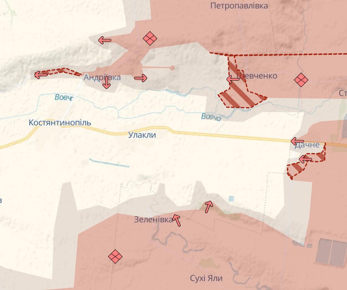 В Харьковской области армия РФ существенно расширила свое присутствие на правом берегу реки Жеребец южнее Макеевки, о чем свидетельствует карта.