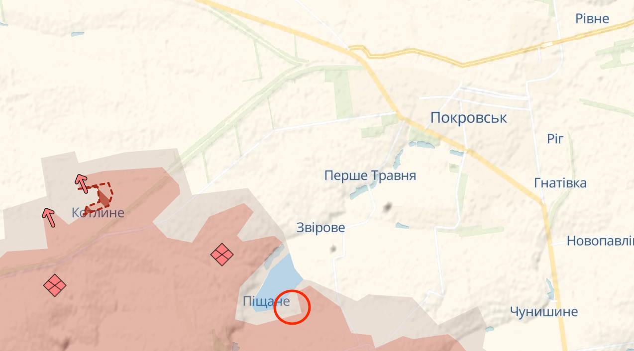 Также под Покровском россияне продвинулись в Котлино. А бойцы Вооруженных сил Украины продолжили наступать в районе Песчаного, чуть отодвинув серую зону.