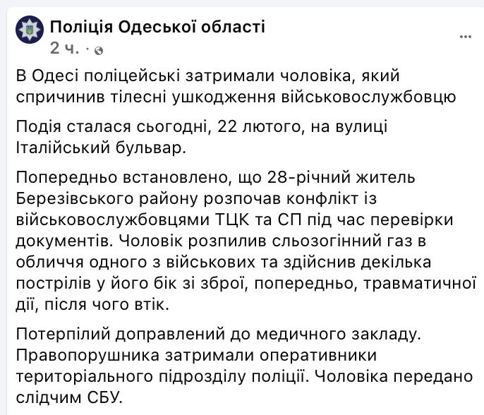 В Одессе мужчина стрелял в военкомов и применил против них слезоточивый газ