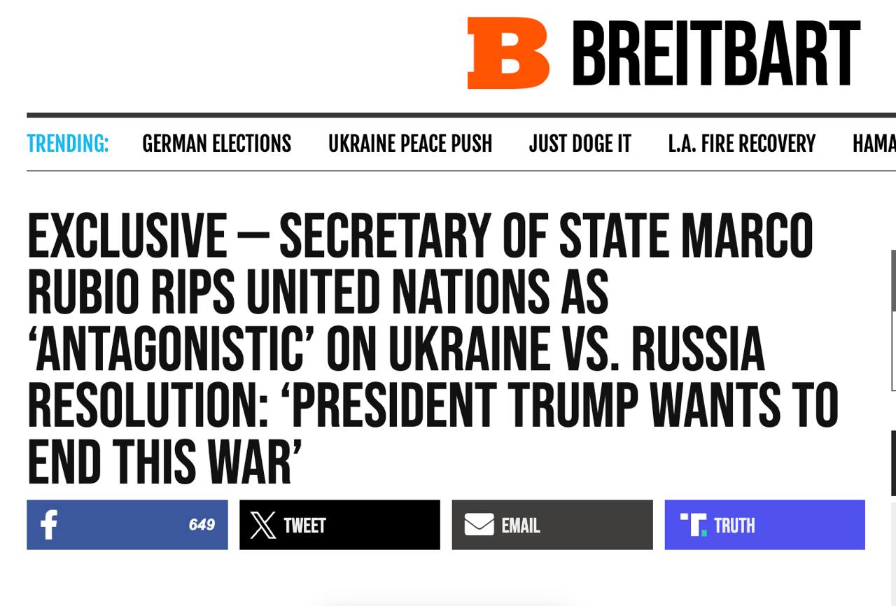 Об этом заявил госсекретарь США Марко Рубио в интервью изданию Breitbart News.