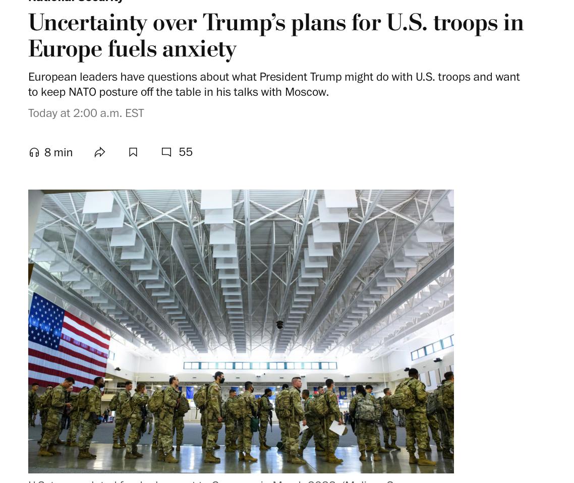"Три европейских дипломата заявили, что ожидают вывода примерно 20 тысяч американских военнослужащих, о котором администрация Байдена объявила в начале войны в Украине", - говорится в сообщении.