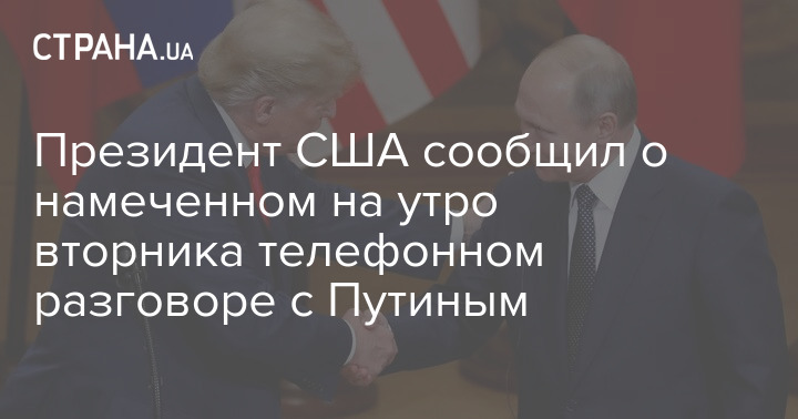 Президент США Дональд Трамп поговорит с главой РФ Владимиром Путиным во вторник утром.