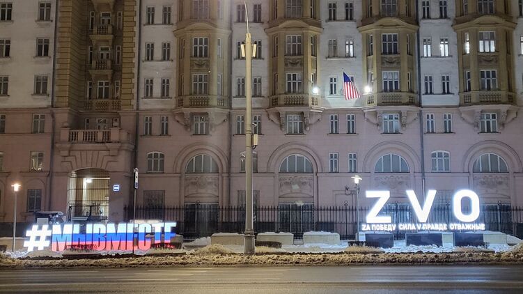 Возле посольства США в Москве начали убирать Z-инсталляции.