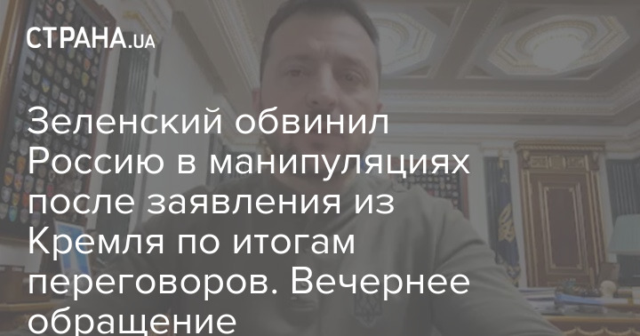 Зеленский обвинил Россию в манипуляциях после заявления из Кремля по итогам переговоров. Вечернее обращение
