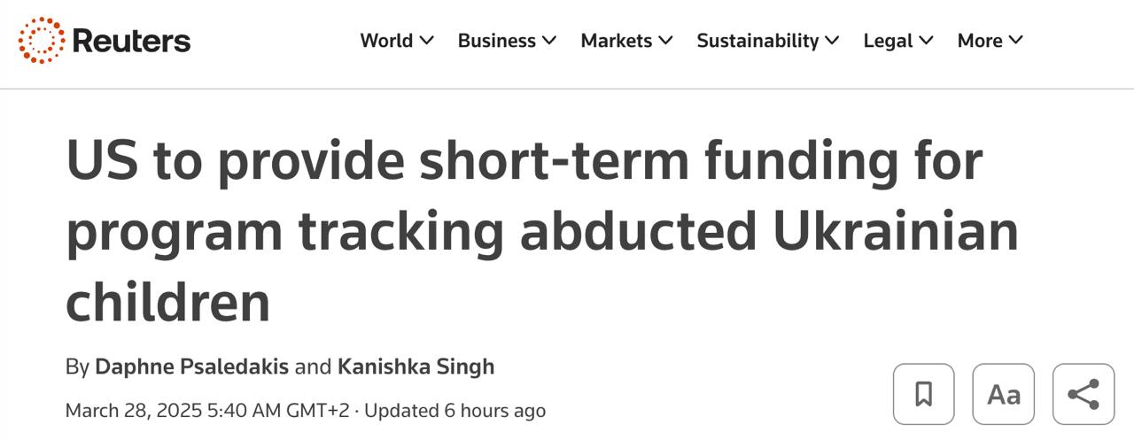 "Финансирование предоставляется на короткий период, пока разработчики программы Conflict Observatory обеспечивают надлежащую передачу критически важных данных о детях соответствующим органам", - заявил агентству представитель Госдепа.